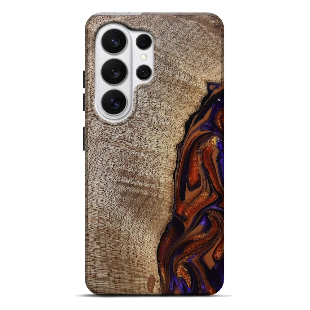 Our Live Edge cases are made from an amazing combination of stabilized wood burl and colored resin. Our stabilization process hardens the wood to protect against cracks and breaks. We do every step of the process at our shop in Northern Indiana. Perfectly fits the Galaxy S26 Ultra.