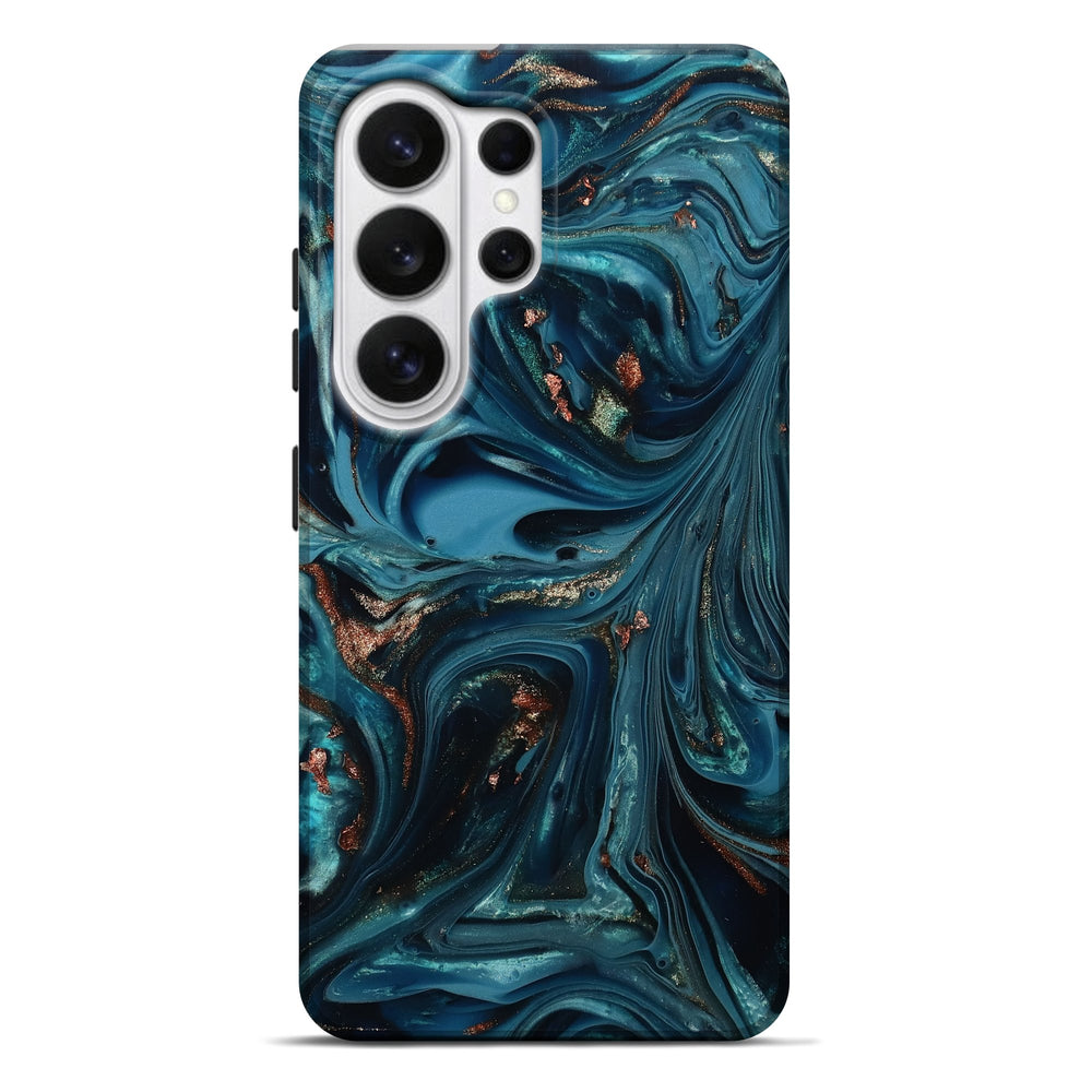 Talan has beautiful swirls of deep blue and teal, with hints of shimmering copper. The smooth resin creates a calming, flowing pattern that invites exploration.