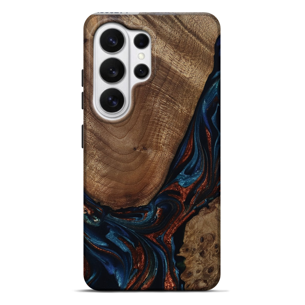 Our Live Edge cases are made from an amazing combination of stabilized wood burl and colored resin. Our stabilization process hardens the wood to protect against cracks and breaks. We do every step of the process at our shop in Northern Indiana. Perfectly fits the Galaxy S26 Ultra.