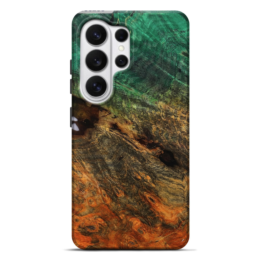 Our Live Edge cases are made from an amazing combination of stabilized wood burl and colored resin. Our stabilization process hardens the wood to protect against cracks and breaks. We do every step of the process at our shop in Northern Indiana. Perfectly fits the Galaxy S26 Ultra.