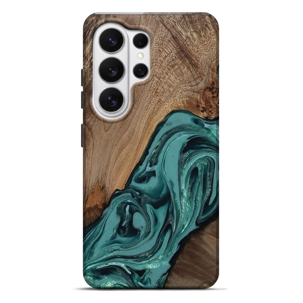 Our Live Edge cases are made from an amazing combination of stabilized wood burl and colored resin. Our stabilization process hardens the wood to protect against cracks and breaks. We do every step of the process at our shop in Northern Indiana. Perfectly fits the Galaxy S26 Ultra.