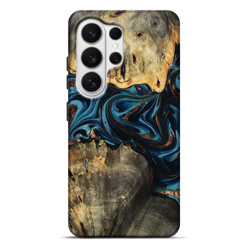 Our Live Edge cases are made from an amazing combination of stabilized wood burl and colored resin. Our stabilization process hardens the wood to protect against cracks and breaks. We do every step of the process at our shop in Northern Indiana. Perfectly fits the Galaxy S26 Ultra.