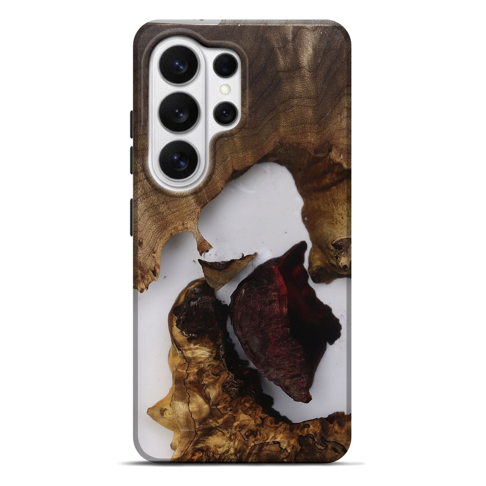 Our Live Edge cases are made from an amazing combination of stabilized wood burl and colored resin. Our stabilization process hardens the wood to protect against cracks and breaks. We do every step of the process at our shop in Northern Indiana. Perfectly fits the Galaxy S26 Ultra.