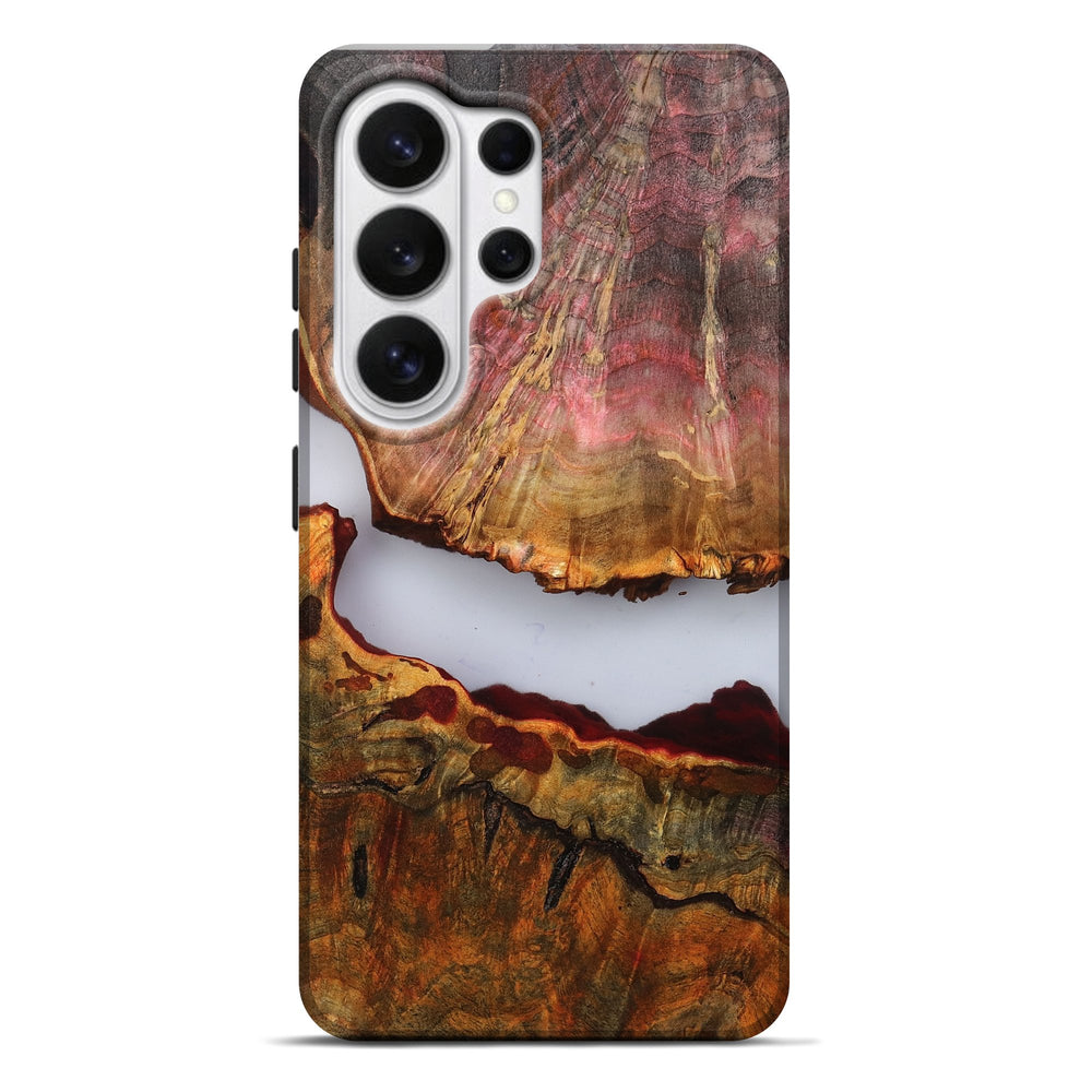 Our Live Edge cases are made from an amazing combination of stabilized wood burl and colored resin. Our stabilization process hardens the wood to protect against cracks and breaks. We do every step of the process at our shop in Northern Indiana. Perfectly fits the Galaxy S26 Ultra.