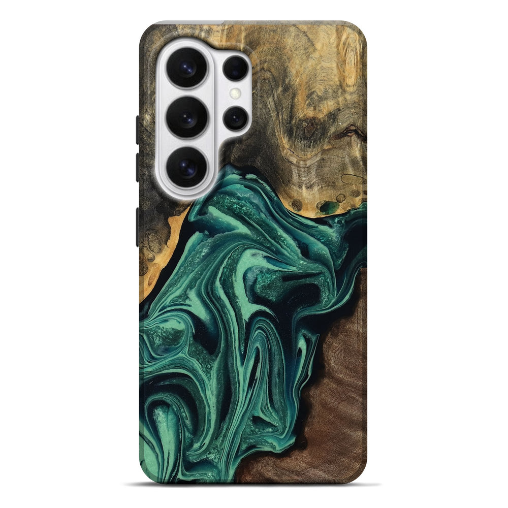Our Live Edge cases are made from an amazing combination of stabilized wood burl and colored resin. Our stabilization process hardens the wood to protect against cracks and breaks. We do every step of the process at our shop in Northern Indiana. Perfectly fits the Galaxy S26 Ultra.