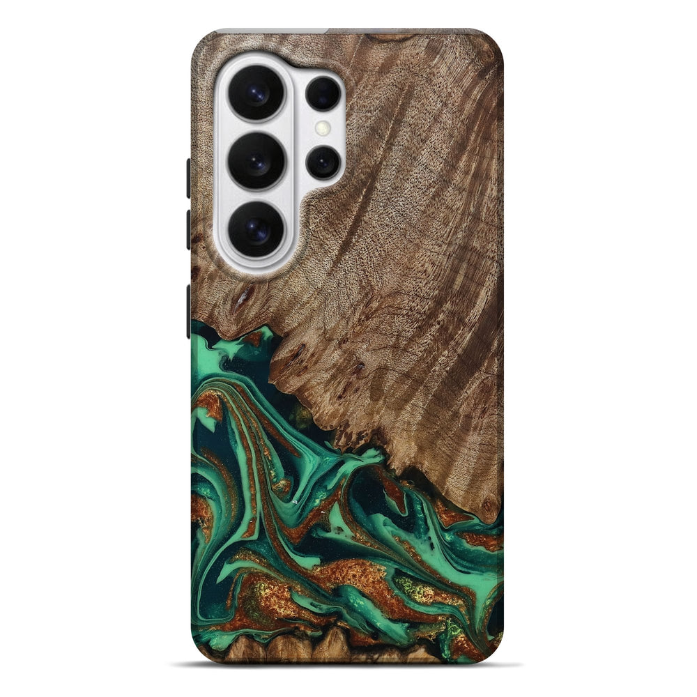Our Live Edge cases are made from an amazing combination of stabilized wood burl and colored resin. Our stabilization process hardens the wood to protect against cracks and breaks. We do every step of the process at our shop in Northern Indiana. Perfectly fits the Galaxy S26 Ultra.