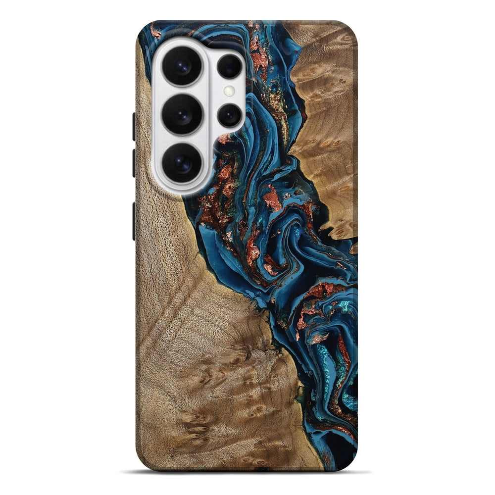 Our Live Edge cases are made from an amazing combination of stabilized wood burl and colored resin. Our stabilization process hardens the wood to protect against cracks and breaks. We do every step of the process at our shop in Northern Indiana. Perfectly fits the Galaxy S26 Ultra.