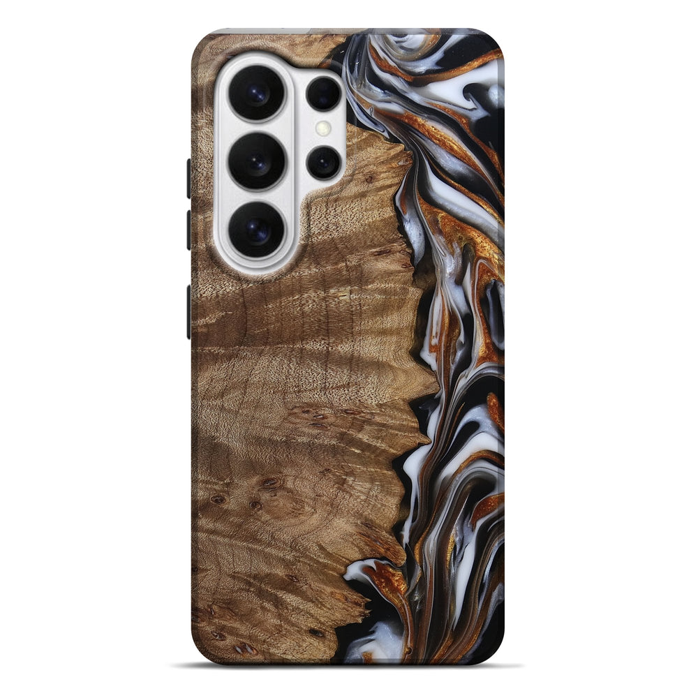 Our Live Edge cases are made from an amazing combination of stabilized wood burl and colored resin. Our stabilization process hardens the wood to protect against cracks and breaks. We do every step of the process at our shop in Northern Indiana. Perfectly fits the Galaxy S26 Ultra.