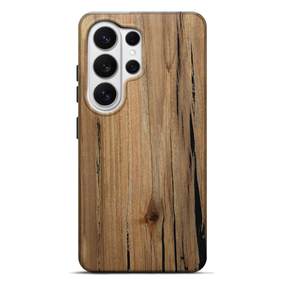 Our Live Edge cases are made from an amazing combination of stabilized wood burl and colored resin. Our stabilization process hardens the wood to protect against cracks and breaks. We do every step of the process at our shop in Northern Indiana. Perfectly fits the Galaxy S26 Ultra.
