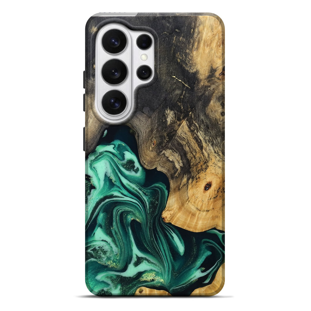 Our Live Edge cases are made from an amazing combination of stabilized wood burl and colored resin. Our stabilization process hardens the wood to protect against cracks and breaks. We do every step of the process at our shop in Northern Indiana. Perfectly fits the Galaxy S26 Ultra.