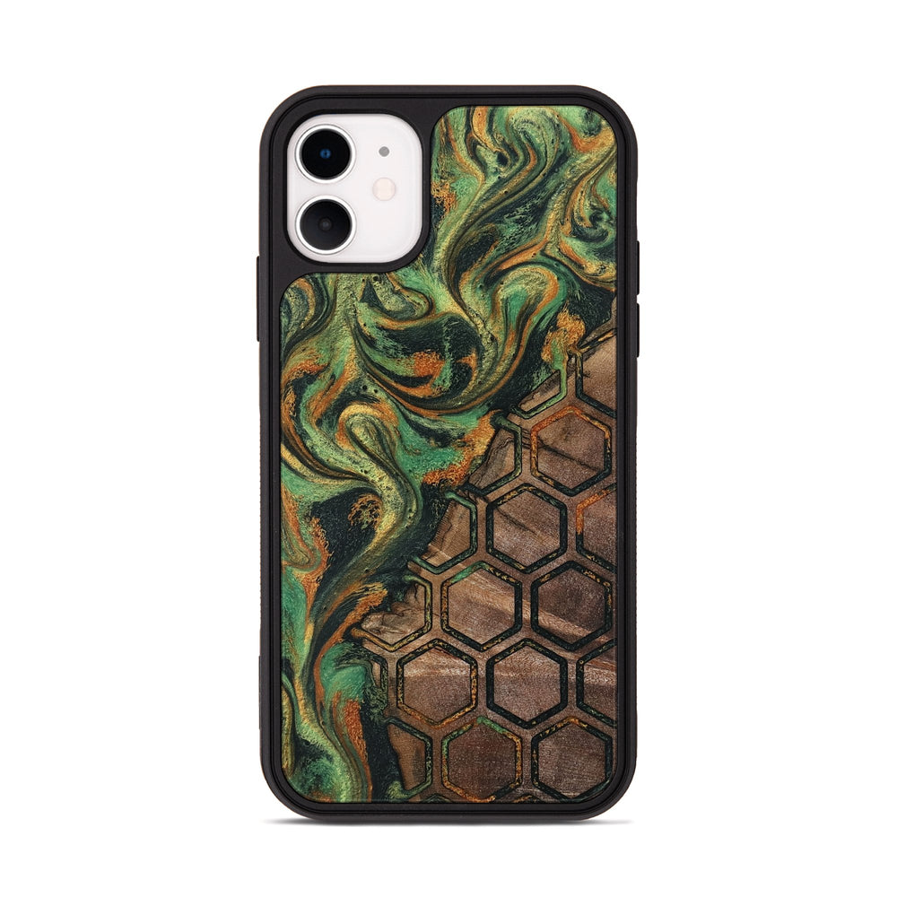 Landon features flowing green and orange patterns that create a lively and dynamic look. The wood has a striking honeycomb design that adds texture and interest.