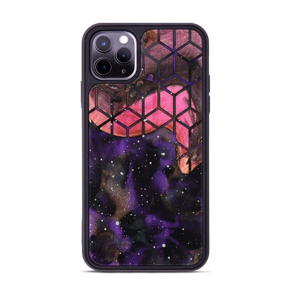 Pete is a vibrant piece of dyed wood featuring a mix of deep purples and pinks. It has a honeycomb pattern overlay that adds an interesting texture to its cosmic design.