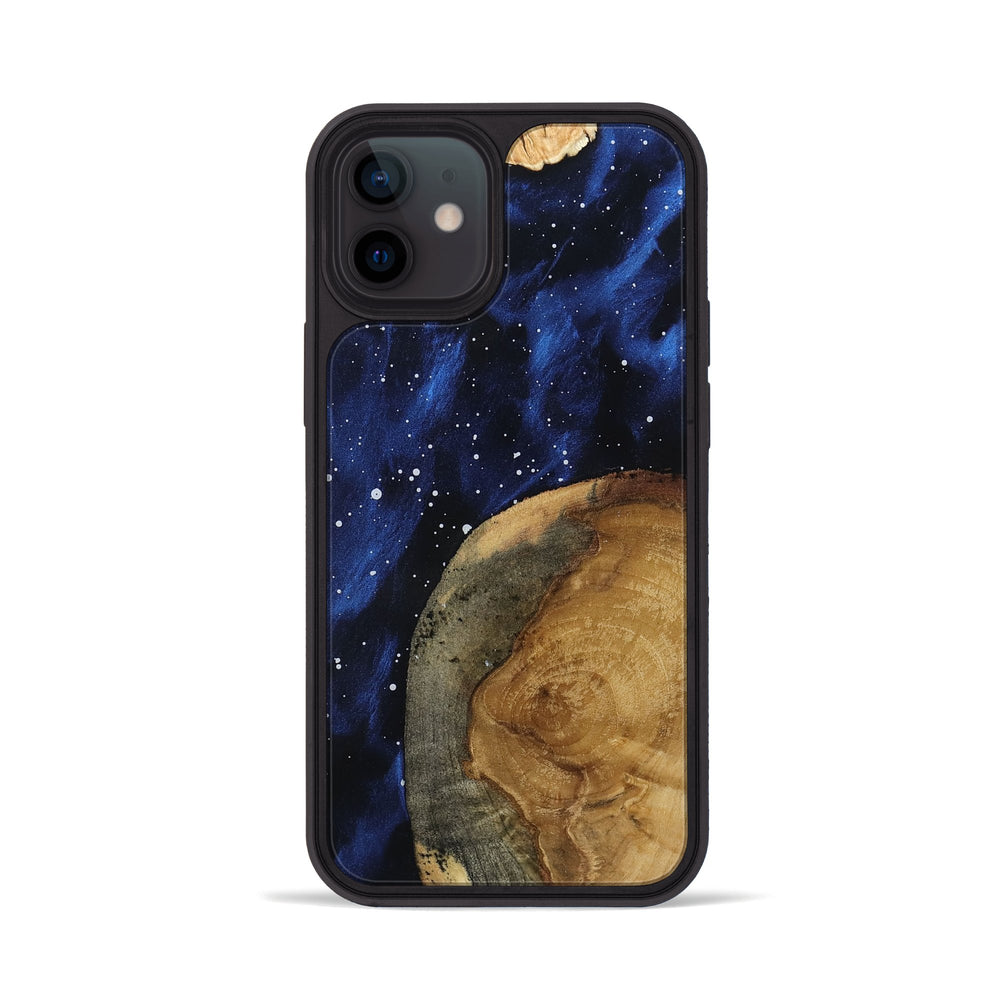 Rubi has a warm, natural finish that highlights the unique patterns in the Buckeye wood. The rich tones create a striking contrast with the deep blue background, giving it a cosmic feel.