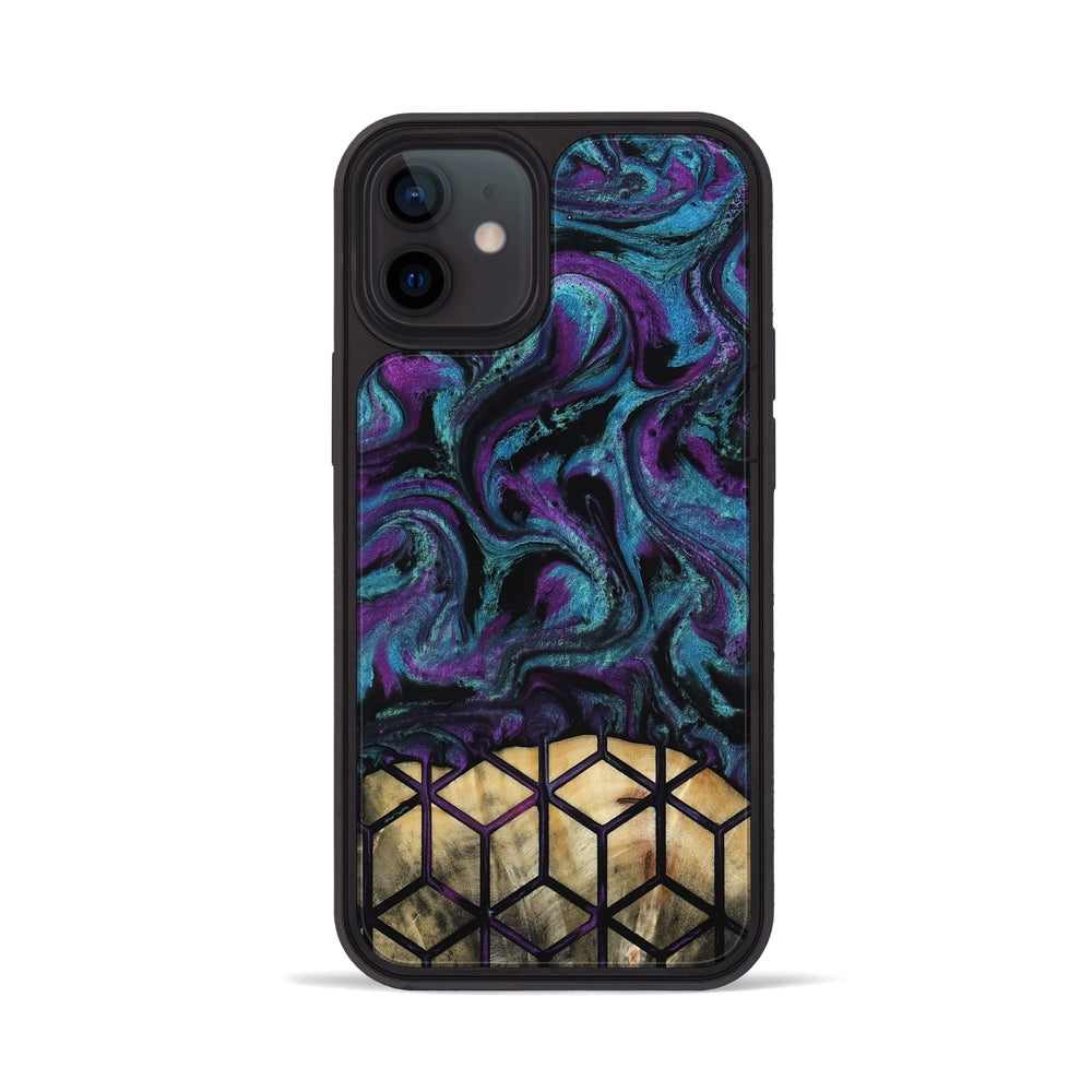 Robb has a beautiful blend of deep purple and vibrant blue swirls that create a lively pattern. The base is a warm, natural wood that adds a nice contrast to the colorful top.