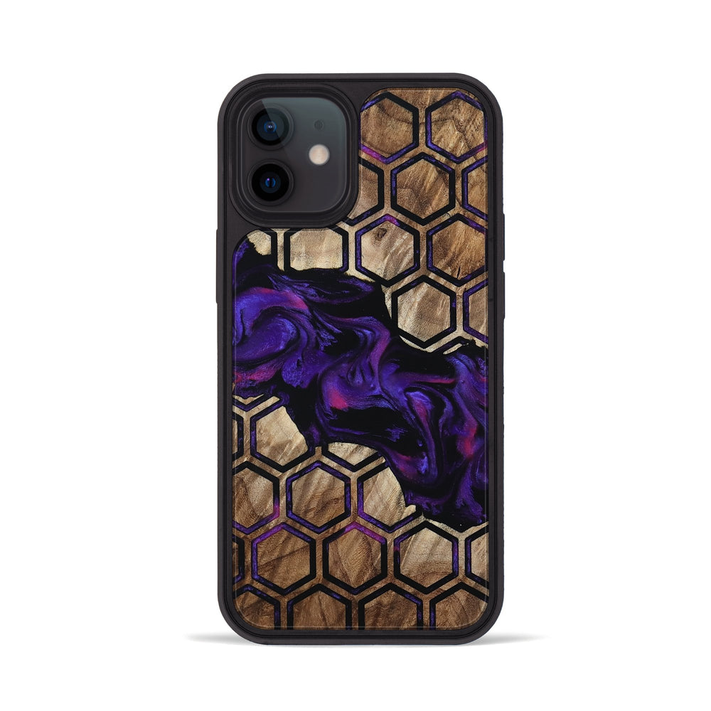Ashtyn has a beautiful mix of warm maple wood tones and vivid purple swirls. Its hexagonal pattern adds a modern touch to the natural wood background.