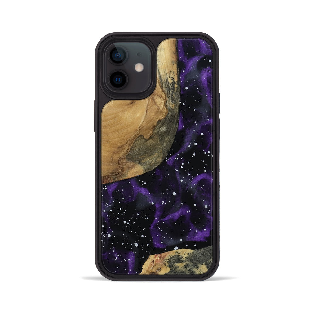 Zahra has beautiful, natural patterns in the rich Buckeye wood, showcasing its smooth texture. The blend of earthy tones and a deep purple background creates a warm yet cosmic feel.