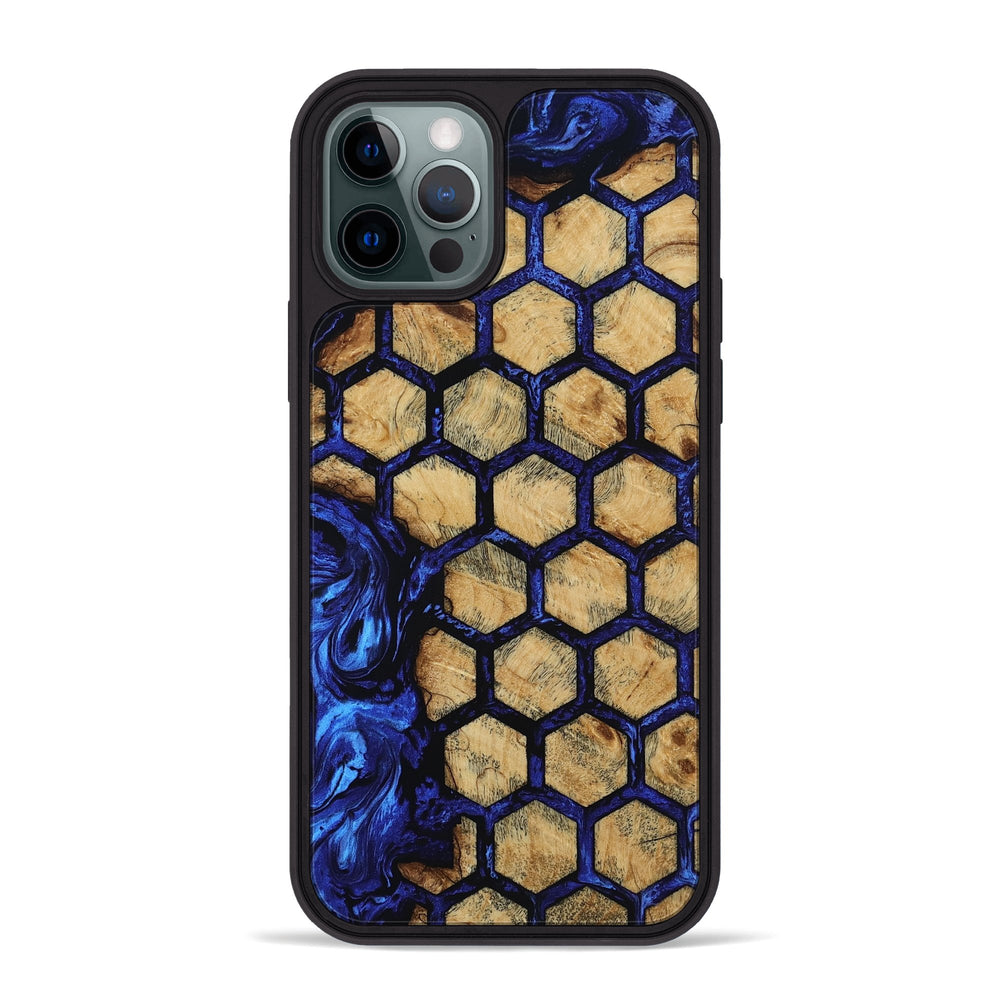 Alice has a warm, golden hue with a unique honeycomb pattern that adds interest. The rich texture of the wood contrasts beautifully with deep blue swirls surrounding it.