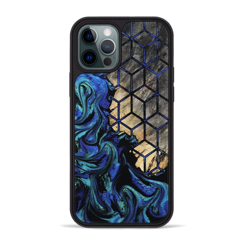 Fabiola has beautiful swirls of blue and black that create a calming flow. It features a striking pattern of honeycomb shapes that adds a unique touch to the wood's natural beauty.
