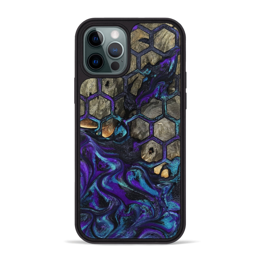 Ieshia has beautiful Buckeye wood with dark and light tones. Intertwined with vibrant swirls of purple and blue, it features a hexagonal pattern that adds depth and interest.