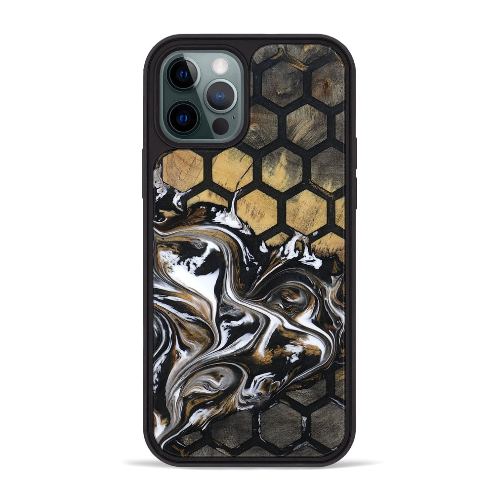 Wylie has a striking pattern of honeycomb shapes, adding a unique texture. The warm tones of the wood contrast beautifully with swirling black and white accents.