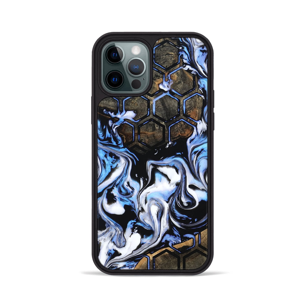 Isai has beautiful Buckeye wood with swirling patterns in blue and white. The hexagonal shapes create a nice contrast, adding a playful touch to the art.