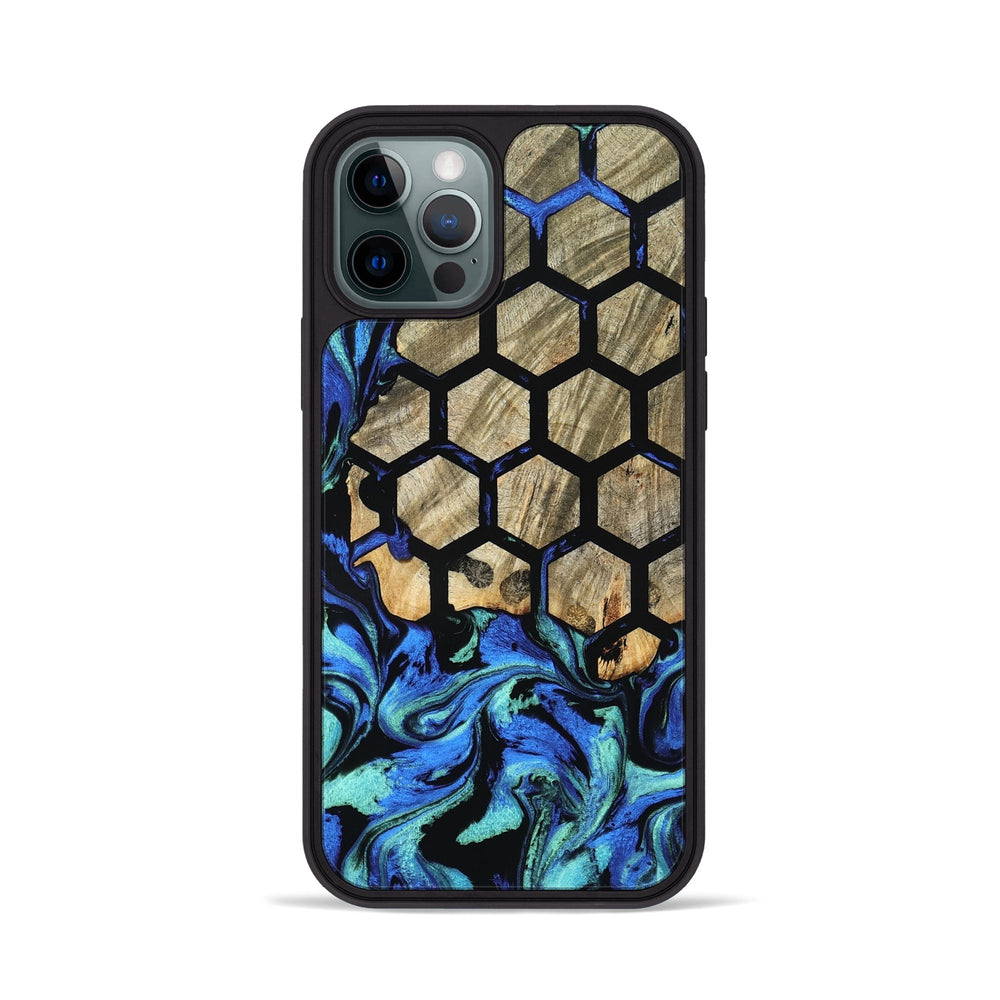 Kiara features a beautiful mix of Buckeye wood with swirling shades of blue and green. The pattern resembles a honeycomb, adding a unique texture to the artwork.
