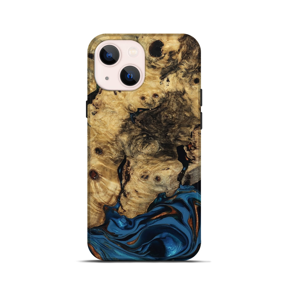 Our Live Edge cases are made from an amazing combination of stabilized wood burl and colored resin. Our stabilization process hardens the wood to protect against cracks and breaks. We do every step of the process at our shop in Northern Indiana. Perfectly fits the iPhone 13 mini.