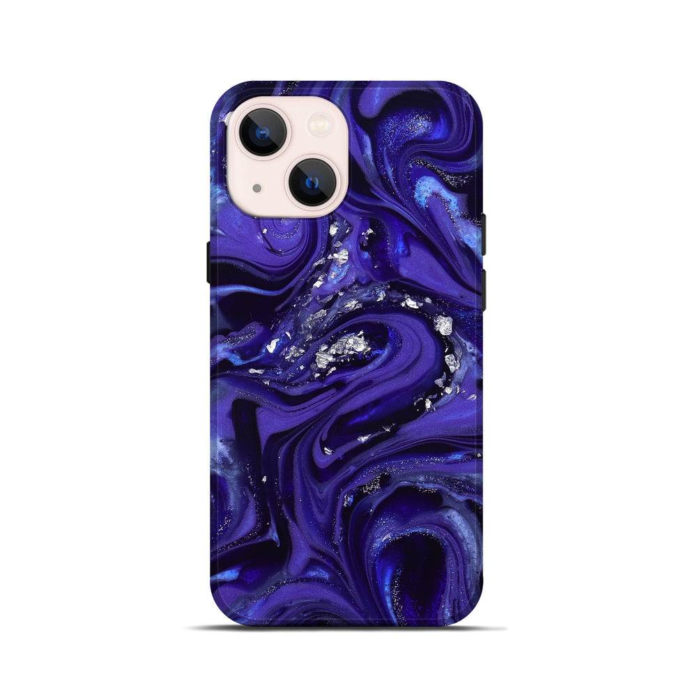 Kyree has deep purple and swirling blue tones that blend beautifully together. It features silver flakes scattered throughout, adding a touch of sparkle.