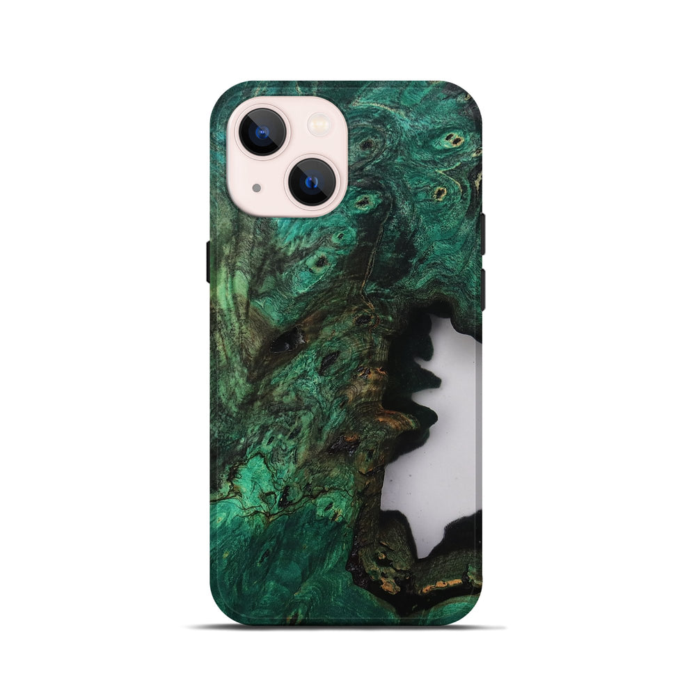 Our Live Edge cases are made from an amazing combination of stabilized wood burl and colored resin. Our stabilization process hardens the wood to protect against cracks and breaks. We do every step of the process at our shop in Northern Indiana. Perfectly fits the iPhone 13 mini.