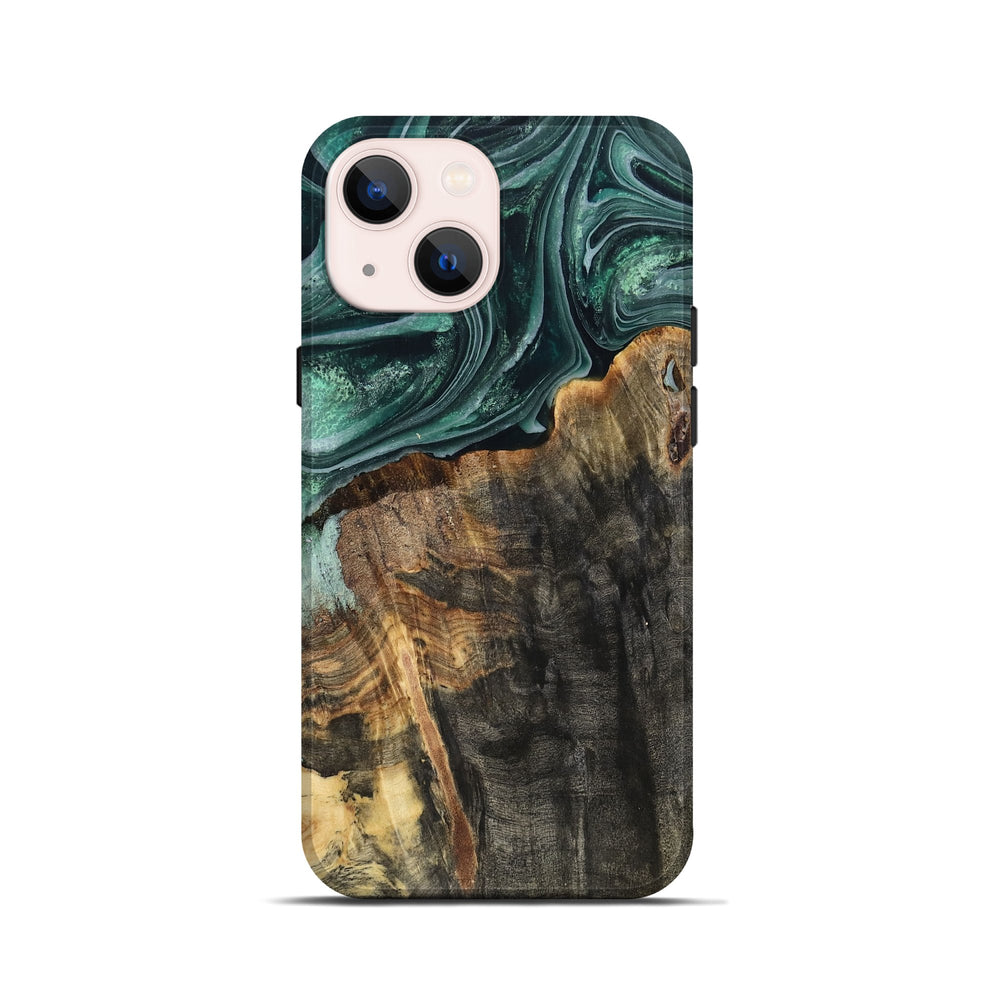 Our Live Edge cases are made from an amazing combination of stabilized wood burl and colored resin. Our stabilization process hardens the wood to protect against cracks and breaks. We do every step of the process at our shop in Northern Indiana. Perfectly fits the iPhone 13 mini.