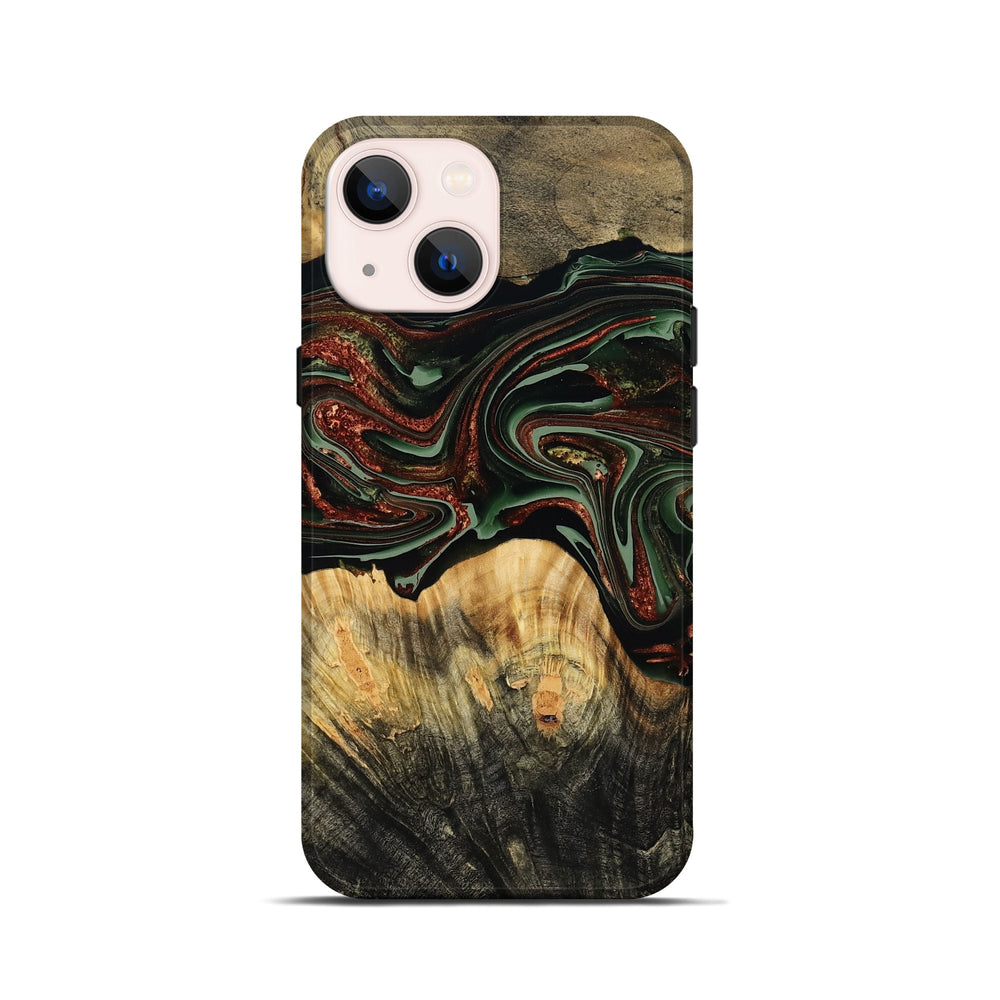 Our Live Edge cases are made from an amazing combination of stabilized wood burl and colored resin. Our stabilization process hardens the wood to protect against cracks and breaks. We do every step of the process at our shop in Northern Indiana. Perfectly fits the iPhone 13 mini.