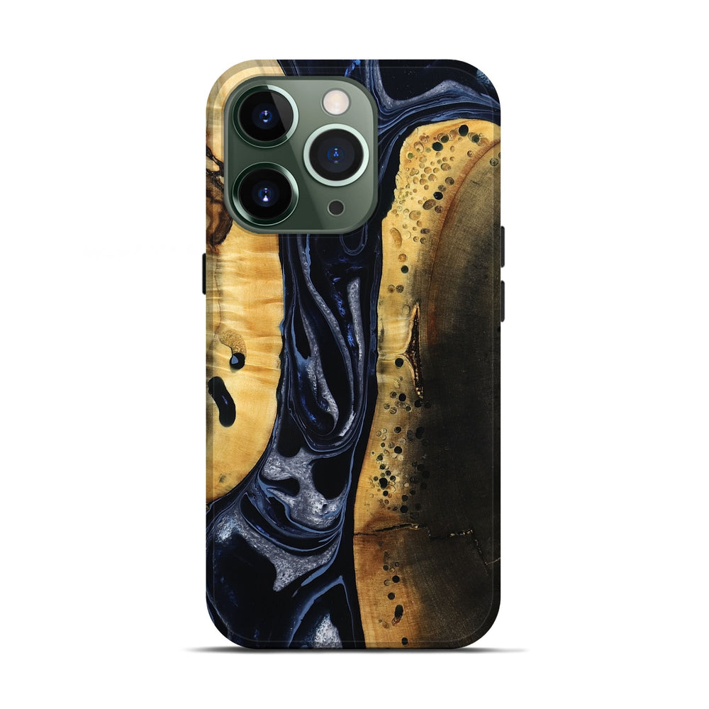 Our Live Edge cases are made from an amazing combination of stabilized wood burl and colored resin. Our stabilization process hardens the wood to protect against cracks and breaks. We do every step of the process at our shop in Northern Indiana. Perfectly fits the iPhone 13 Pro.