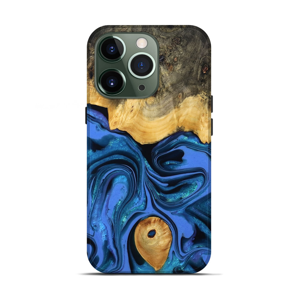 Our Live Edge cases are made from an amazing combination of stabilized wood burl and colored resin. Our stabilization process hardens the wood to protect against cracks and breaks. We do every step of the process at our shop in Northern Indiana. Perfectly fits the iPhone 13 Pro.