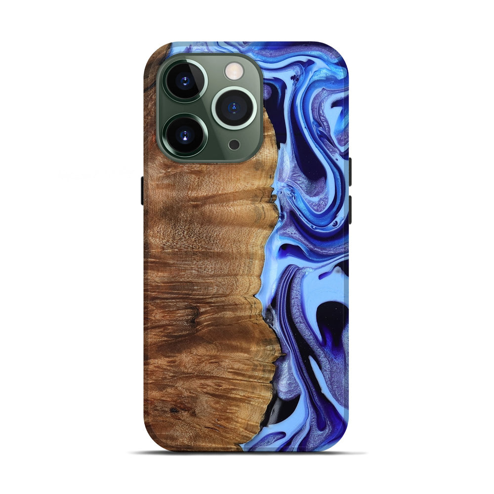 Our Live Edge cases are made from an amazing combination of stabilized wood burl and colored resin. Our stabilization process hardens the wood to protect against cracks and breaks. We do every step of the process at our shop in Northern Indiana. Perfectly fits the iPhone 13 Pro.