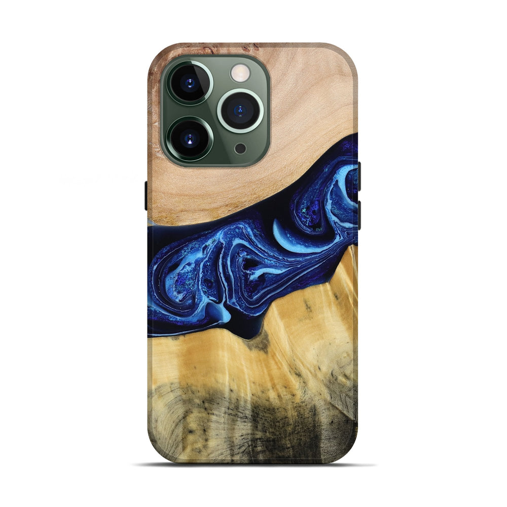 Our Live Edge cases are made from an amazing combination of stabilized wood burl and colored resin. Our stabilization process hardens the wood to protect against cracks and breaks. We do every step of the process at our shop in Northern Indiana. Perfectly fits the iPhone 13 Pro.
