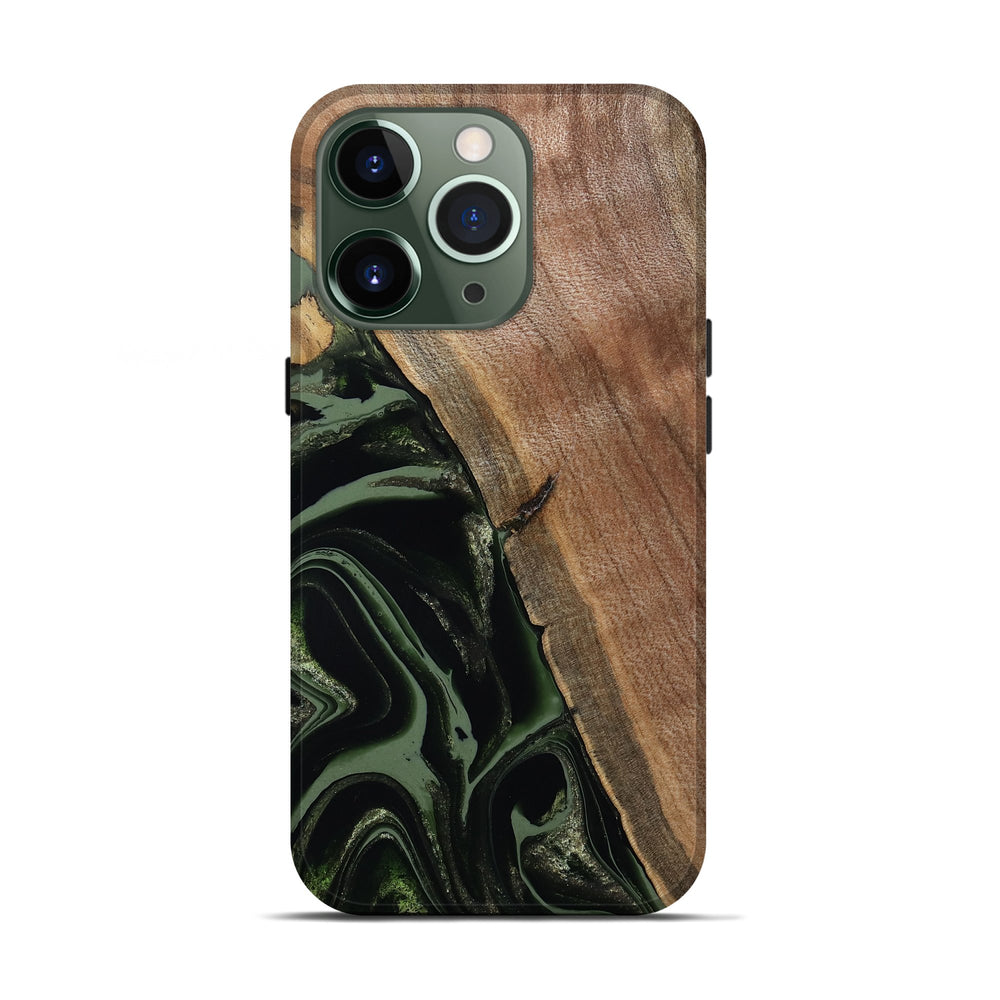 Our Live Edge cases are made from an amazing combination of stabilized wood burl and colored resin. Our stabilization process hardens the wood to protect against cracks and breaks. We do every step of the process at our shop in Northern Indiana. Perfectly fits the iPhone 13 Pro.