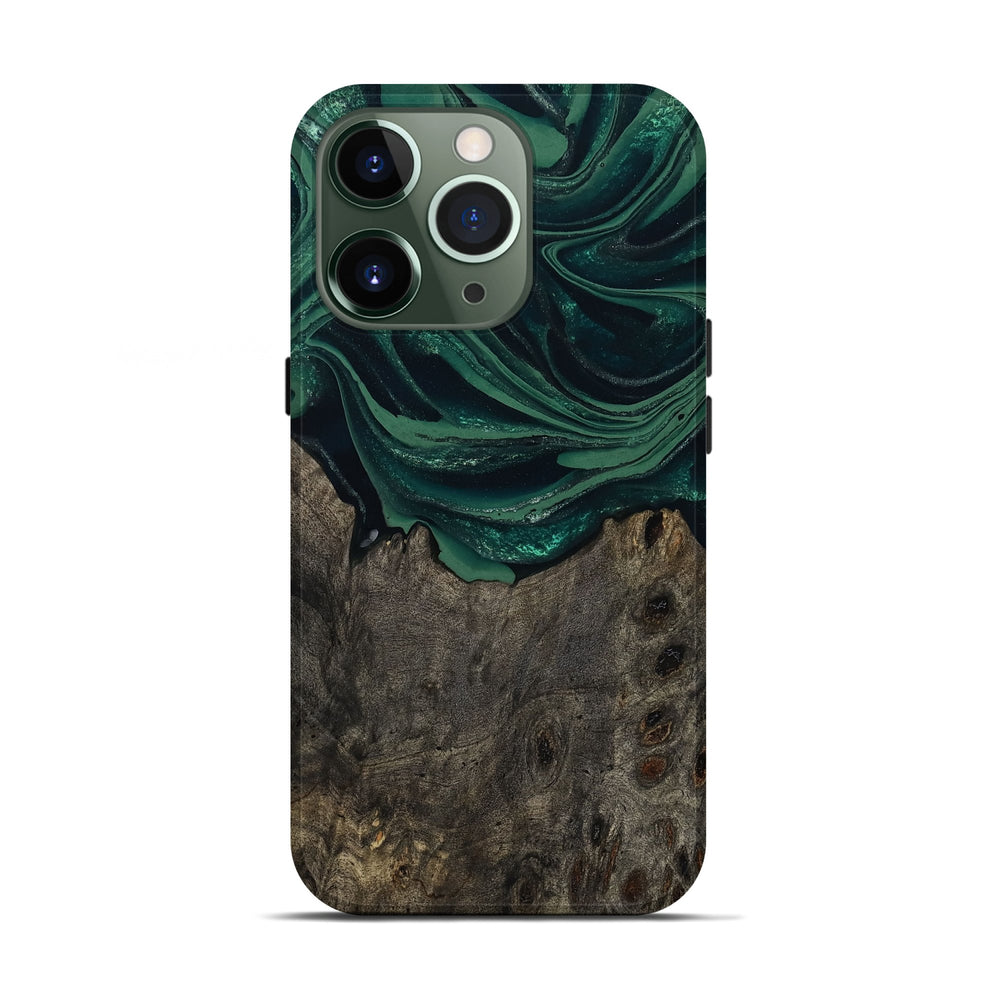 Our Live Edge cases are made from an amazing combination of stabilized wood burl and colored resin. Our stabilization process hardens the wood to protect against cracks and breaks. We do every step of the process at our shop in Northern Indiana. Perfectly fits the iPhone 13 Pro.