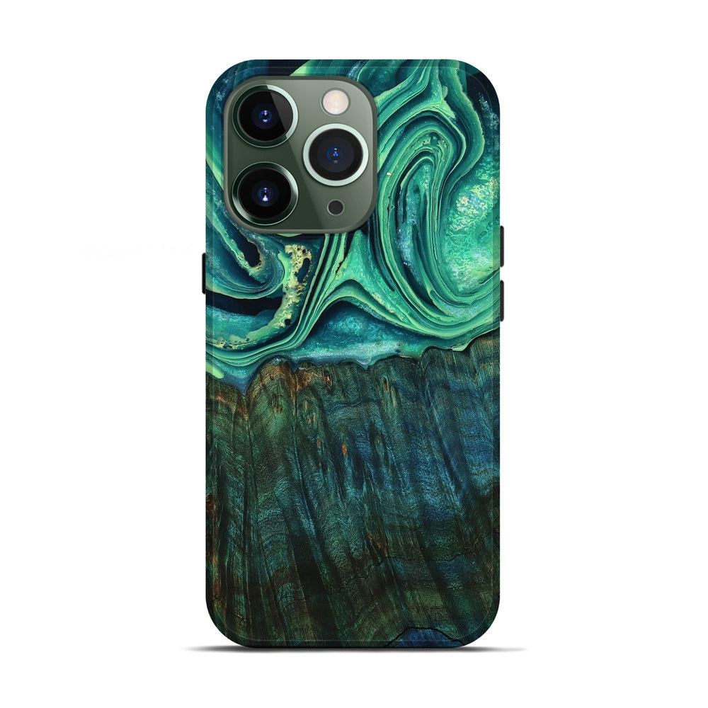 Our Live Edge cases are made from an amazing combination of stabilized wood burl and colored resin. Our stabilization process hardens the wood to protect against cracks and breaks. We do every step of the process at our shop in Northern Indiana. Perfectly fits the iPhone 13 Pro.