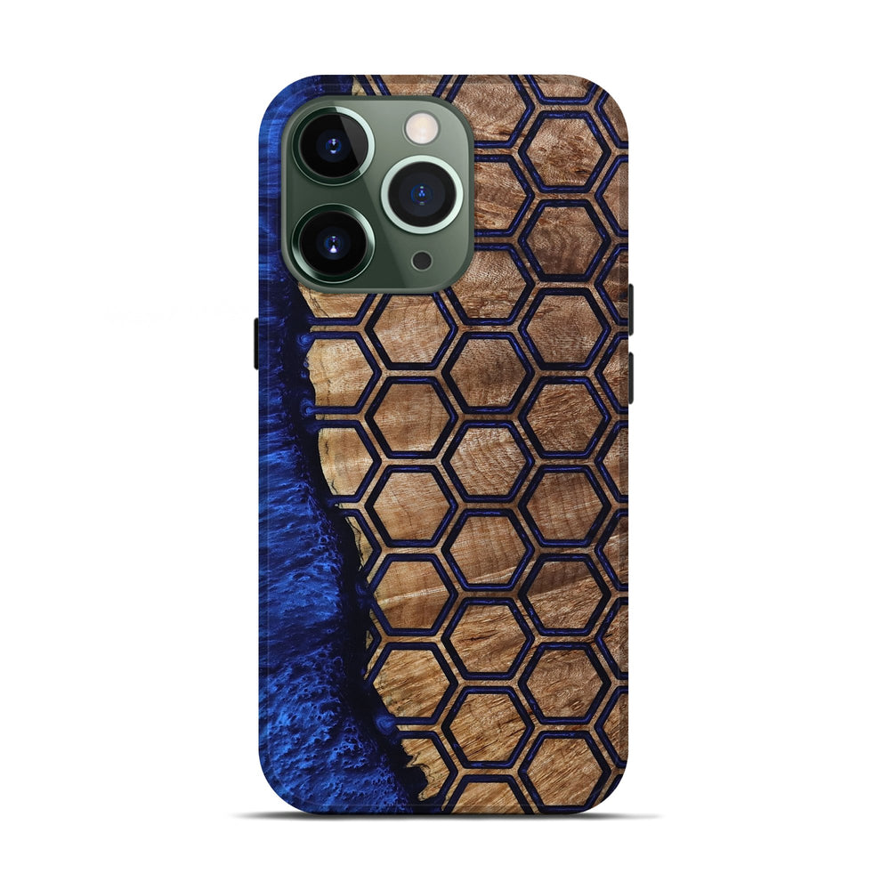 Our Live Edge cases are made from an amazing combination of stabilized wood burl and colored resin. Our stabilization process hardens the wood to protect against cracks and breaks. We do every step of the process at our shop in Northern Indiana. Perfectly fits the iPhone 13 Pro.