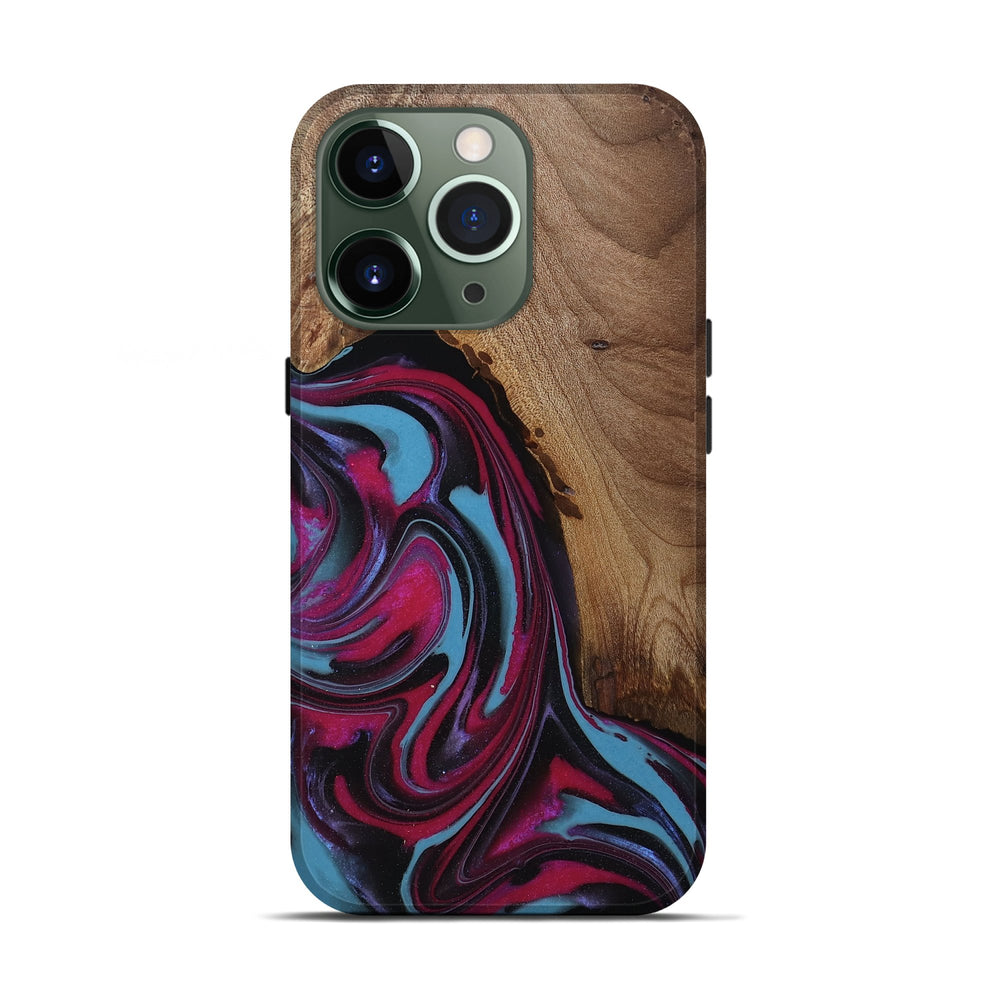 Our Live Edge cases are made from an amazing combination of stabilized wood burl and colored resin. Our stabilization process hardens the wood to protect against cracks and breaks. We do every step of the process at our shop in Northern Indiana. Perfectly fits the iPhone 13 Pro.