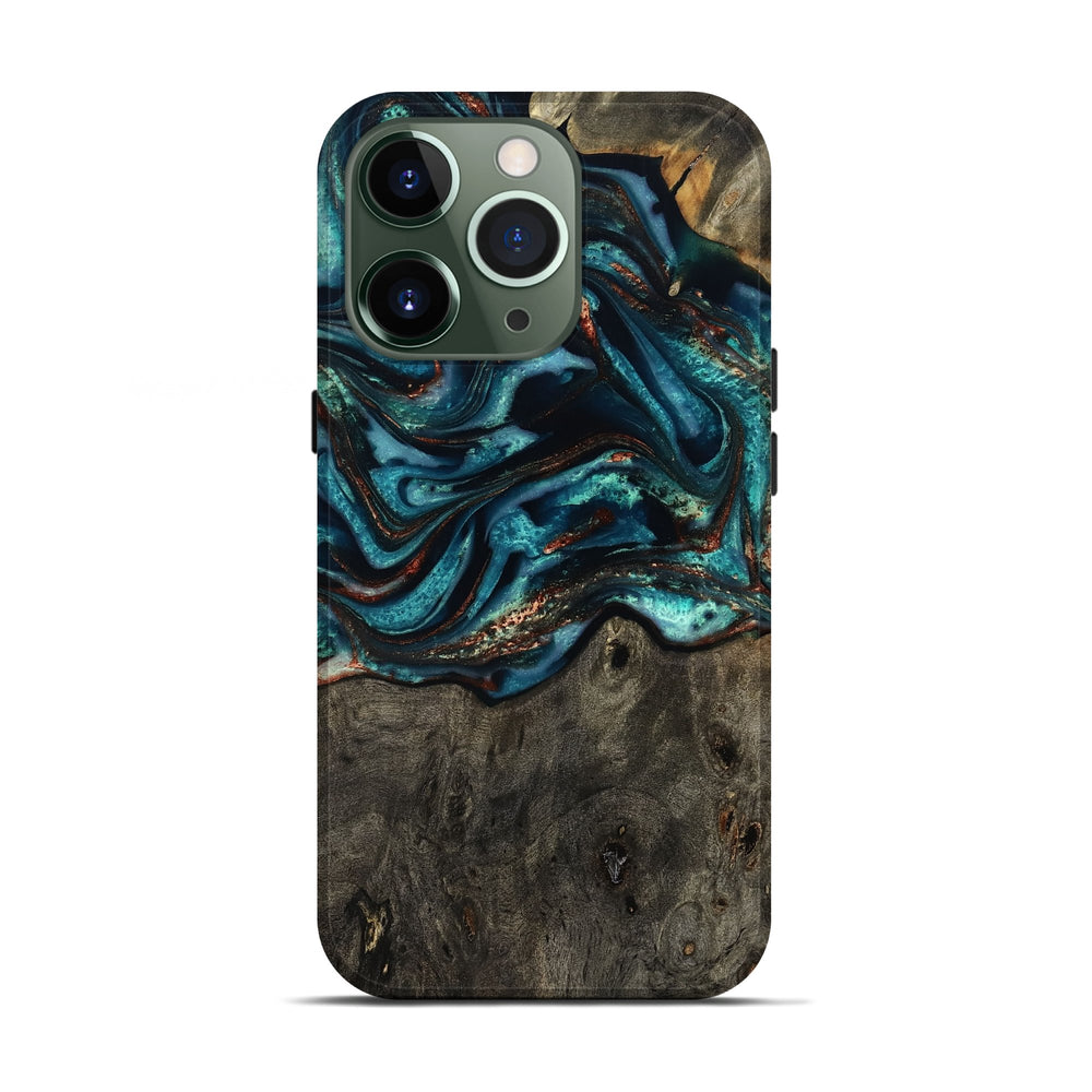 Our Live Edge cases are made from an amazing combination of stabilized wood burl and colored resin. Our stabilization process hardens the wood to protect against cracks and breaks. We do every step of the process at our shop in Northern Indiana. Perfectly fits the iPhone 13 Pro.