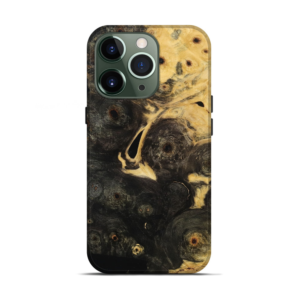 Our Live Edge cases are made from an amazing combination of stabilized wood burl and colored resin. Our stabilization process hardens the wood to protect against cracks and breaks. We do every step of the process at our shop in Northern Indiana. Perfectly fits the iPhone 13 Pro.