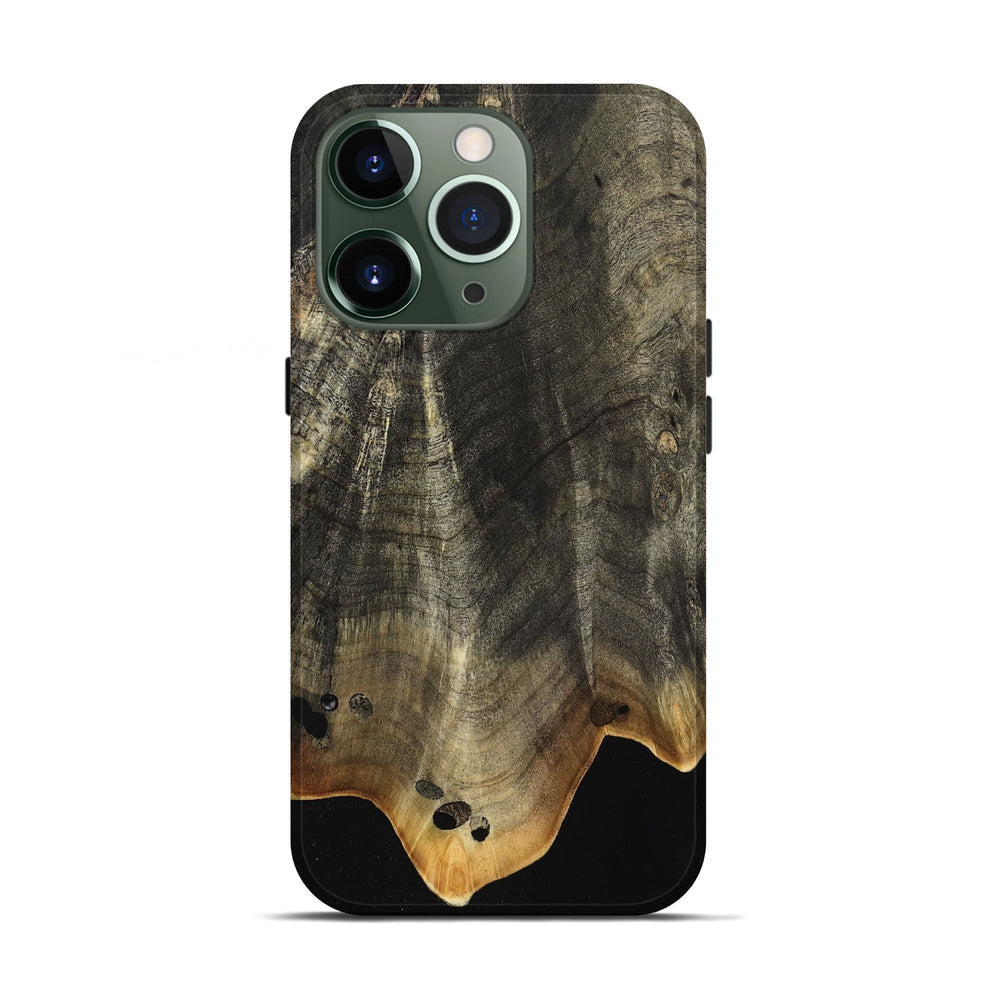 Our Live Edge cases are made from an amazing combination of stabilized wood burl and colored resin. Our stabilization process hardens the wood to protect against cracks and breaks. We do every step of the process at our shop in Northern Indiana. Perfectly fits the iPhone 13 Pro.