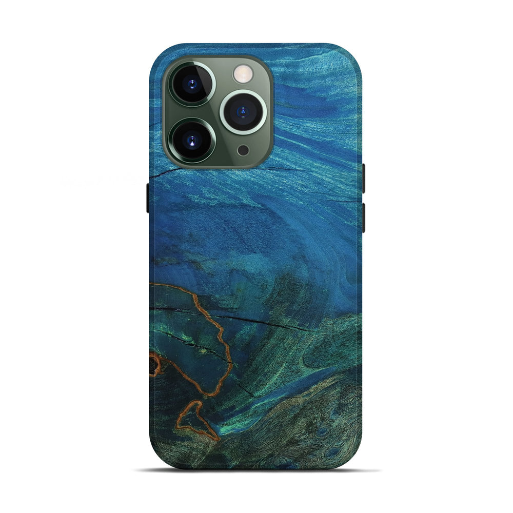Our Live Edge cases are made from an amazing combination of stabilized wood burl and colored resin. Our stabilization process hardens the wood to protect against cracks and breaks. We do every step of the process at our shop in Northern Indiana. Perfectly fits the iPhone 13 Pro.