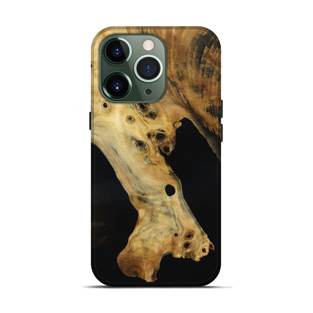 Our Live Edge cases are made from an amazing combination of stabilized wood burl and colored resin. Our stabilization process hardens the wood to protect against cracks and breaks. We do every step of the process at our shop in Northern Indiana. Perfectly fits the iPhone 13 Pro.