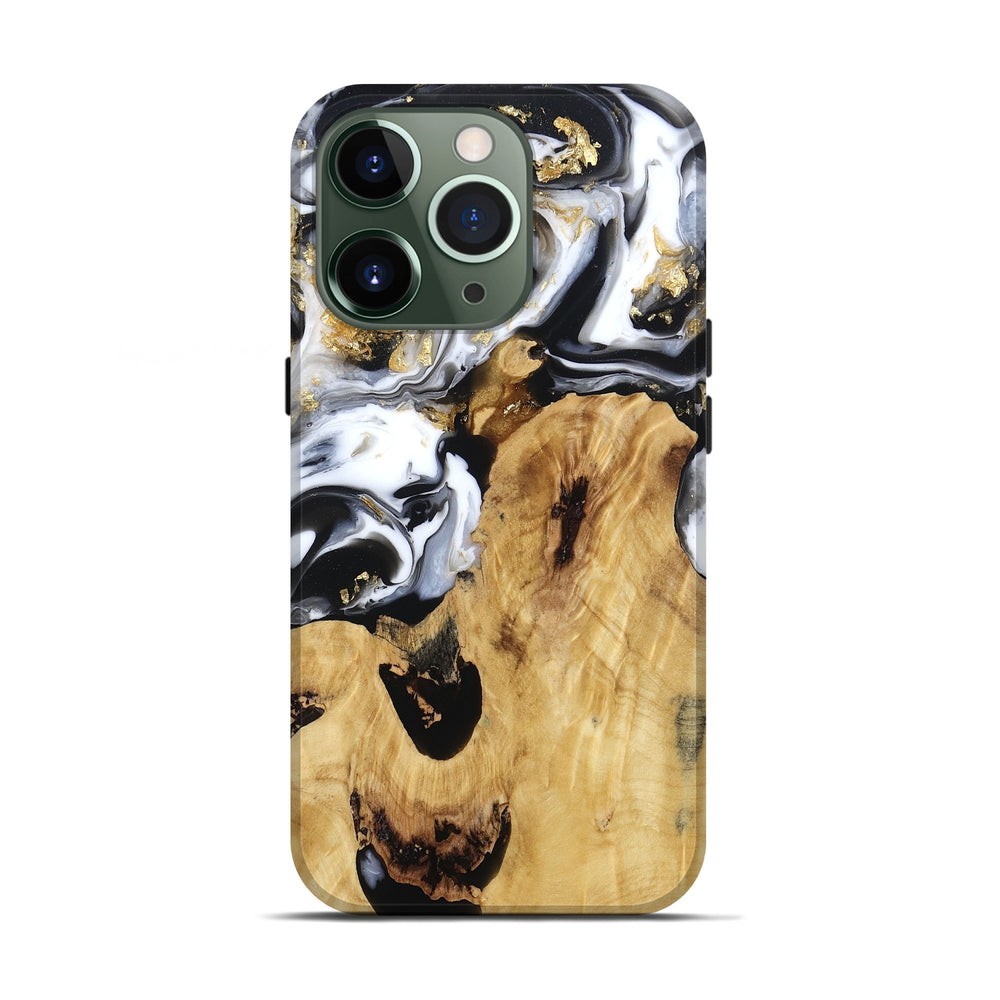 Our Live Edge cases are made from an amazing combination of stabilized wood burl and colored resin. Our stabilization process hardens the wood to protect against cracks and breaks. We do every step of the process at our shop in Northern Indiana. Perfectly fits the iPhone 13 Pro.