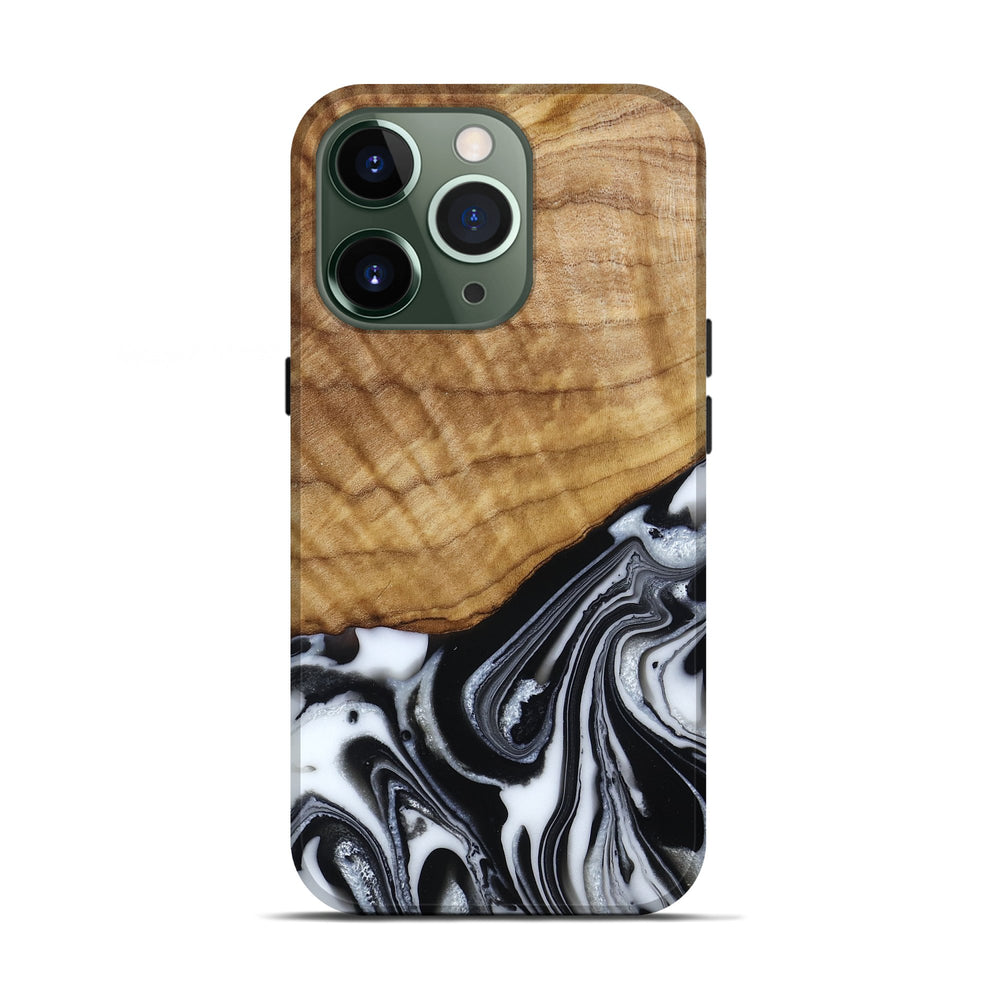 Our Live Edge cases are made from an amazing combination of stabilized wood burl and colored resin. Our stabilization process hardens the wood to protect against cracks and breaks. We do every step of the process at our shop in Northern Indiana. Perfectly fits the iPhone 13 Pro.