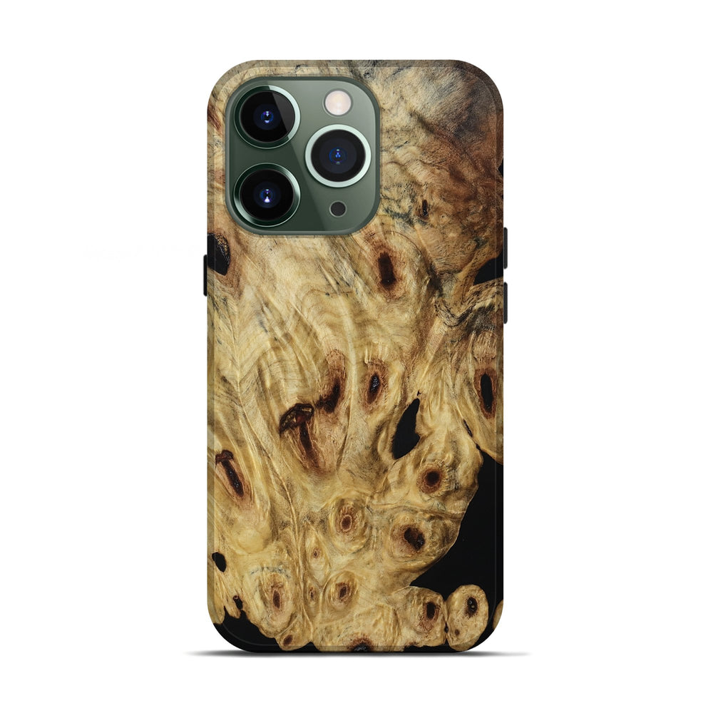 Our Live Edge cases are made from an amazing combination of stabilized wood burl and colored resin. Our stabilization process hardens the wood to protect against cracks and breaks. We do every step of the process at our shop in Northern Indiana. Perfectly fits the iPhone 13 Pro.