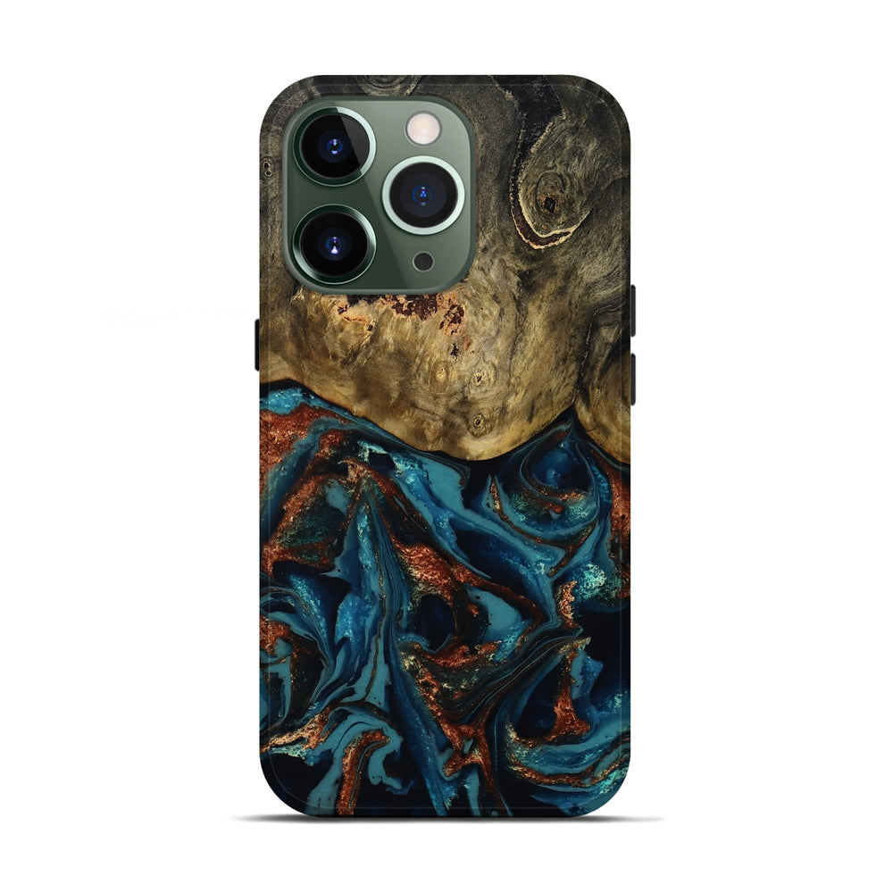 Our Live Edge cases are made from an amazing combination of stabilized wood burl and colored resin. Our stabilization process hardens the wood to protect against cracks and breaks. We do every step of the process at our shop in Northern Indiana. Perfectly fits the iPhone 13 Pro.