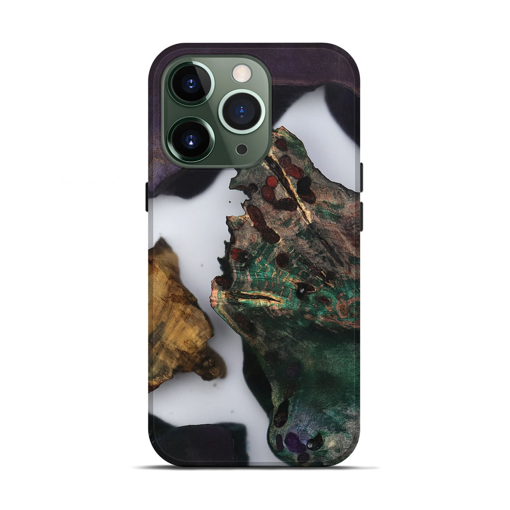 Our Live Edge cases are made from an amazing combination of stabilized wood burl and colored resin. Our stabilization process hardens the wood to protect against cracks and breaks. We do every step of the process at our shop in Northern Indiana. Perfectly fits the iPhone 13 Pro.